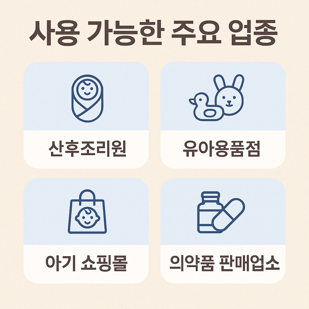 첫만남 이용권은 전국의 유아용품점, 산후조리원, 아기전용 쇼핑몰 등에서 사용할 수 있습니다. 사용처는 복지부 홈페이지나 각 카드사 홈페이지에서 확인할 수 있으며, 일반적인 백화점이나 마트에서는 제한이 있을 수 있으니 꼭 확인해야 합니다.