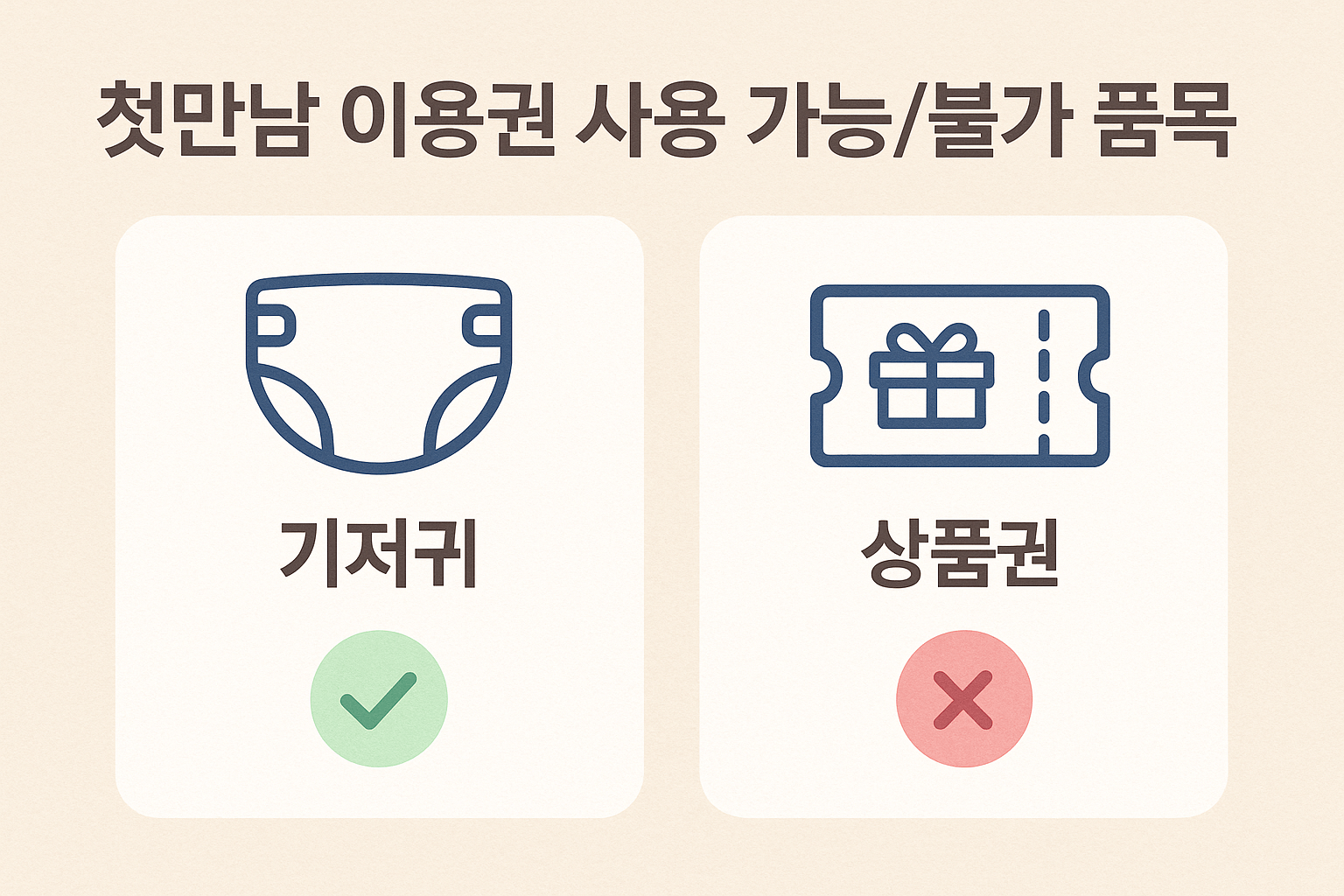 첫만남 이용권은 현금화가 불가능한 바우처입니다. 상품권 구매, 현금성 상품(예: 기프트카드, 유가증권 등) 구매는 제한되며, 엄격히 모니터링되고 있습니다. 이를 위반할 경우 제재나 환수 조치가 있을 수 있으니 주의가 필요합니다.
